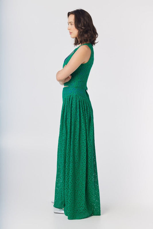 Iris Blouse in Jade Green Embroidered Cotton