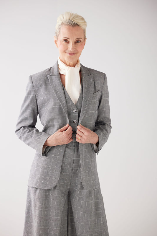 Each piece is made in New York and designed to work across seasons. Jackets anchor a look, trousers extend the line and allow for freedom of movement, and vests add dimension and provide timeless elegance. These women’s tailored suits are built to layer, adapt, and stay in a wardrobe for years. The palette includes classic plaids, versatile neutrals, and radiant colors that pair naturally with knitwear, shirting, and outerwear.