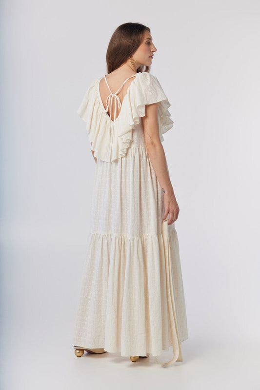 Papillon Dress in Cream Embroidered Cotton
