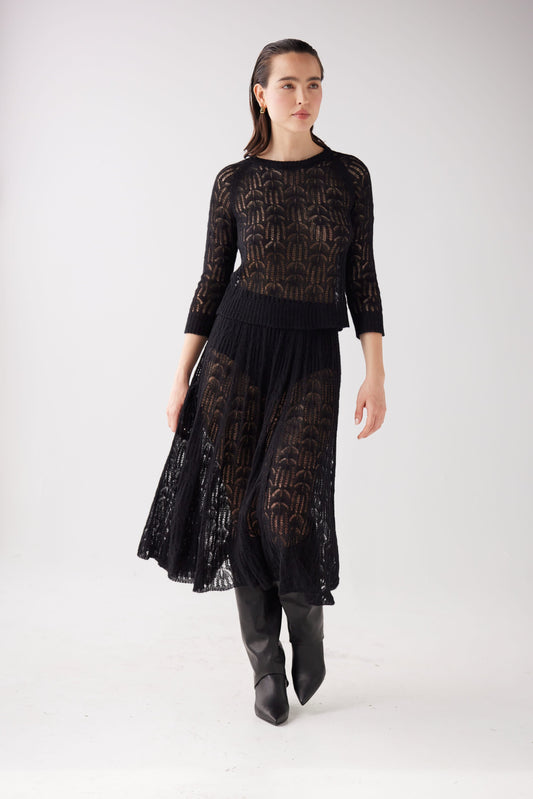 Erin Lace Knit Skirt - Black
