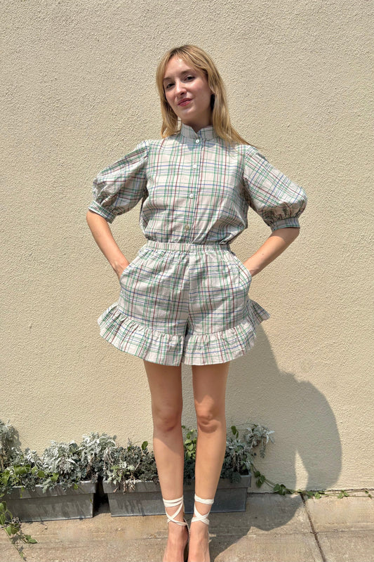 Una Shorts in Oyster Plaid Cotton
