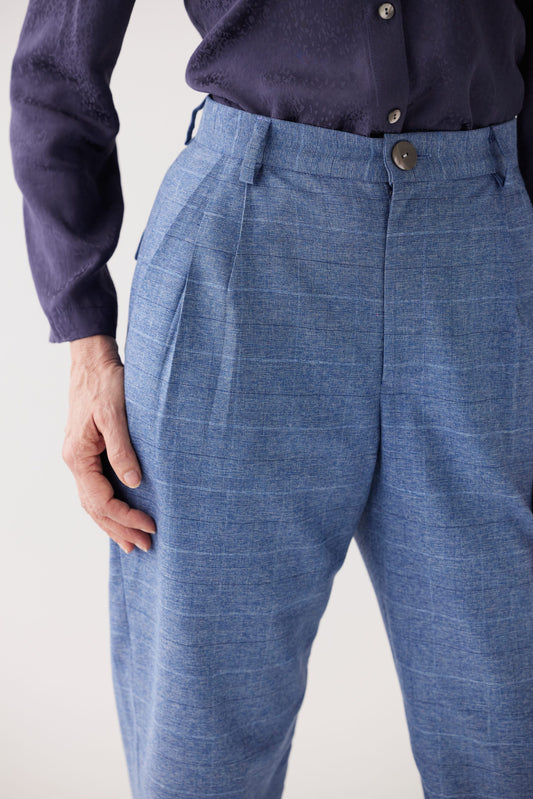 Sophia Pant in Sky Plaid Tropical Wool