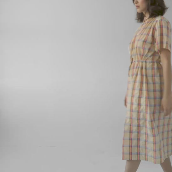 Georgie Dress in Lemon Yellow Plaid Cotton Blend