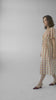 A sweet midi length shirt dress with a rounded Peter Pan collar and adjustable drawstring waist, perfect for warm days. A short sleeved version of our favorite Georgia dress, the Georgie buttons down the front with cuffable short sleeves, delicate pleats at the shoulder, and deep hip pockets. Wear it cinched as a sun dress or open over the matching Gretchen pants or jeans.