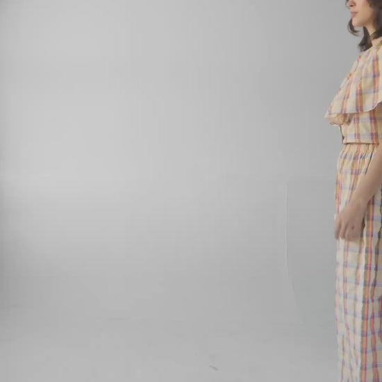 Gretchen Pant in Lemon Yellow Plaid Cotton Blend